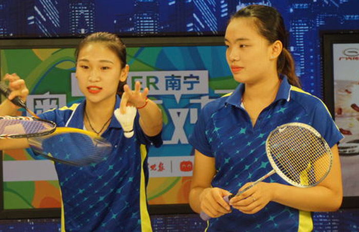 8月15日晚,老友网、南宁头条和南宁晚报联合推出了奥运面对面互动直播的第三期节目。本期嘉宾为广西羽毛球队运动员黄蒙苗和董文静。黄蒙苗是唐渊渟在广西队时的双打搭档。黄蒙苗表示,自己一开始并不练双打,因唐渊渟才学习的双打。黄蒙苗还爆料称,唐渊渟在队里时就是一名学霸,英语好到可以随便和外国人交流。