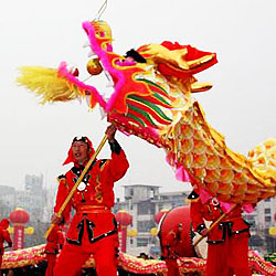 舞龙又称耍龙灯、 龙灯舞。龙是汉民族古老的图腾,传说龙能行云布雨、消灾降福,象征祥瑞,所以以舞龙的方式来祈求平安和丰收就成为全国各地汉民族的一种习俗。
