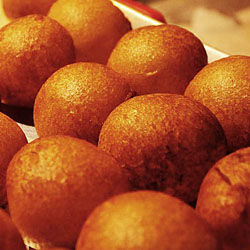 元宵节吃汤圆已经是普遍的习惯,在广西的上林、靖西等地还有吃油团(有的地方也称“煎堆”“油堆”)的习俗。这两种食物都为小圆球形,表示团圆。