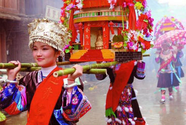 在唐代,壮族出了一个歌仙,名叫“刘三姐”。她聪明过人,经常用山歌歌颂劳动和爱情,揭露财主们的罪恶,财主们对她又恨又怕,因此一年的三月初三,乘刘三姐在山上砍柴时,财主派人砍断了山藤,使她坠崖身亡。后人为了纪念这位歌仙,便在刘三姐遇难这天聚会唱歌,一唱就是三天三夜,歌圩就此形成。这些传说现已难于考证,但在宋人著的《太平寰宇记》中就有记载:“壮人于谷熟之际,择日祭神,男女盛会作歌。”这说明当时的歌圩也很兴盛。宋元以后,壮族山歌的发展尤为突出,歌圩也成了文化娱乐和男女谈情说爱的场所,并出现了抛绣球的游戏。女子将绣球抛给自己心爱的男子后,双双退出歌场,互赠定情信物,到了清代,便形成了成千上万人参加的大型活动。