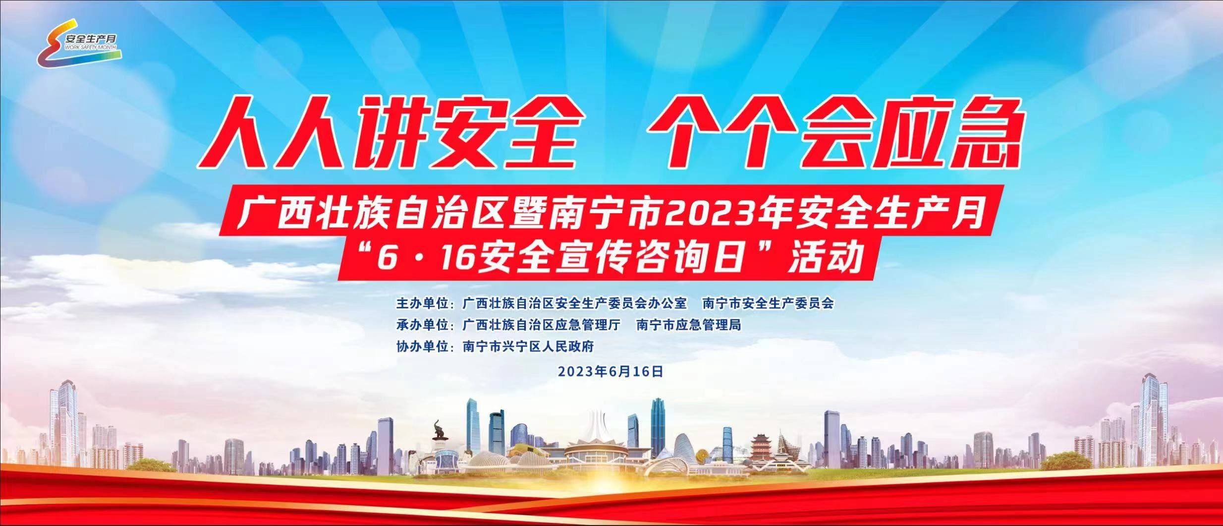6月16日上午9:00,广西壮族自治区暨南宁市2023年安全生产月“6•16安全宣传咨询日”活动在南宁市朝阳广场举行,活动全程在“广西应急管理”微信公众号、老友网、南宁头条App、“南宁广播电视台”视频号、“看南宁”官方抖音账号同步直播。