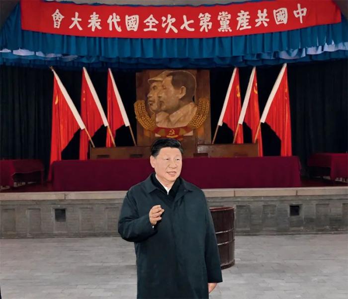 2022年10月27日,习近平带领中共中央政治局常委瞻仰延安革命纪念地。这是习近平在杨家岭瞻仰中共七大会址。新华社记者 燕雁 摄