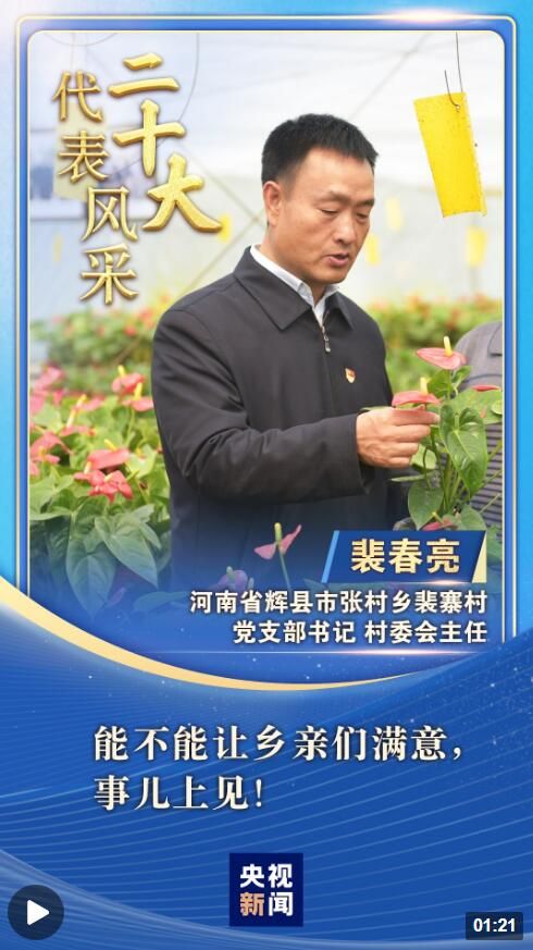 “二十大代表风采”一起来认识河南省辉县市张村乡裴寨村党支部书记、村委会主任裴春亮。