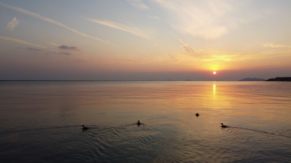↑这是2019年11月22日拍摄的巢湖,鸟类翔集,风景如画。