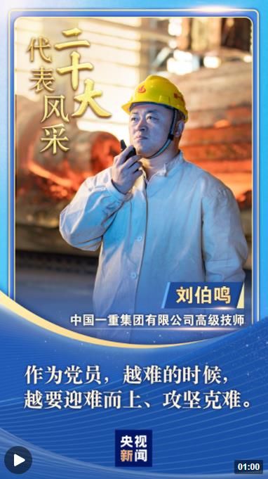 “二十大代表风采”一起来认识中国一重高级技师刘伯鸣。