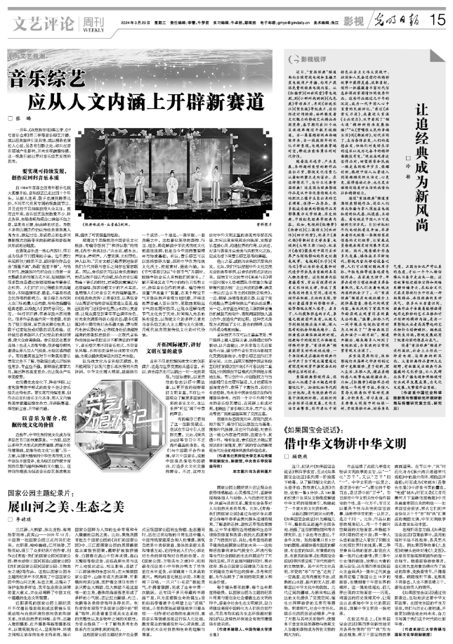 随着技术进步、产业发展,各种题材类型的新作品层出不穷,影视文化消费已从最初的匮乏走向富余。在这种情况下,为什么还要重温经典?这是因为经典影视作品是从中华优秀传统文化的肥沃土壤中生长出来的艺术硕果,值得一品再品。很多能成为经典的影视作品用影像展示文学经典、历史经典、中国红色经典等经典内容。比如,电视剧《红楼梦》《西游记》《三国演义》《水浒传》《四世同堂》,纪录片《唐之韵》等取材自文学名著,电视剧《大明王朝1566》、纪录片《南宋》聚焦对中国乃至世界产生深远影响的历史时期或故事。电视剧《孔子》《司马迁》等以为社会发展和时代进步作出杰出贡献的真实人物为原型。这些经典内容意蕴厚重,背后有深厚的历史文化传统支撑,形成了隽永悠远的意义空间,通过电视作品积极、正向的呈现,营造出意蕴厚重的影像世界,能带领观众深入思考。在当下,人们获取信息的方式、渠道之便捷前所未有,从短文字到短视频应接不暇,深入思考的机会却越来越少。在经典意识面临挑战的时候,经典给予的深刻艺术体验显得格外珍贵。“重温经典”频道获得良好的收视成绩,一个原因就是其播放的经典作品呼应了当下观众渴望通过有深度的观赏开掘深层次的精神生活的诉求。