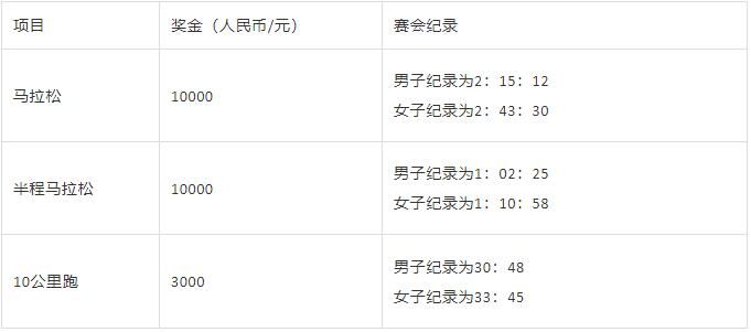 (八)马拉松项目名次奖,前三名以枪声成绩进行排名,第四名至第六名以净计时进行排名;半程马拉松(公开组)项目名次奖、半程马拉松(居民组)项目名次奖、10公里跑项目名次奖,均以净计时成绩进行排名。