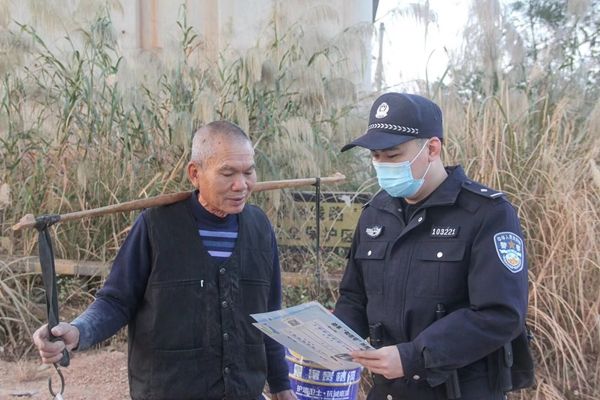 民警对附近居民进行相关法制宣传。