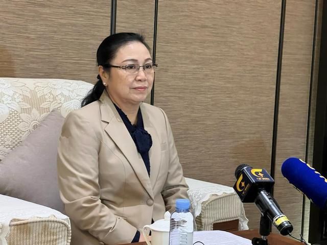 老挝驻华大使坎葆·恩塔万在第19届东博会期间接受记者采访(图源:东博社)