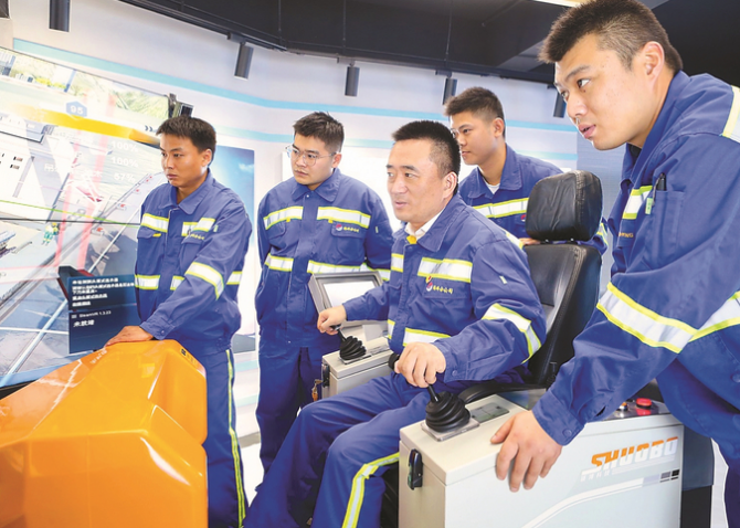 党的二十大代表、张家港港务集团港埠分公司门机司机黄强:以执着的信念、精湛的技术在平凡的工作岗位上一干就是22年,他的“黄强工作室”团队始终是公司技术攻关的“智囊团”。庞瑞和 摄