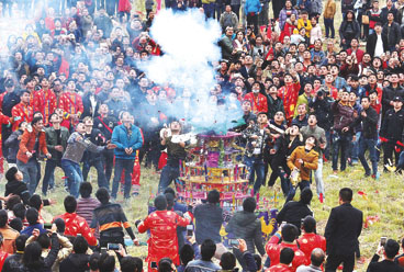 有个孝顺青年每天上山打柴时都背着残疾老母亲以便照顾,无奈山上的猴子总是抢走青年为母亲准备的饭团,为了不让母亲挨饿,青年想出办法用枫叶将饭团染黑,饭团从此不被猴子抢走,后来人们就用各种植物染饭团。四是一对年轻的夫妻听到箩筐内的各种谷物抱怨说各种植物都有好看的花衣穿,而稻谷的颜色又单调又难看,于是采摘各种植物于三月三蒸煮糯米饭讨好谷物之神,从此以后连年丰收。由此,五色糯米饭在三月三的祭祖中是不可缺少的享祭。